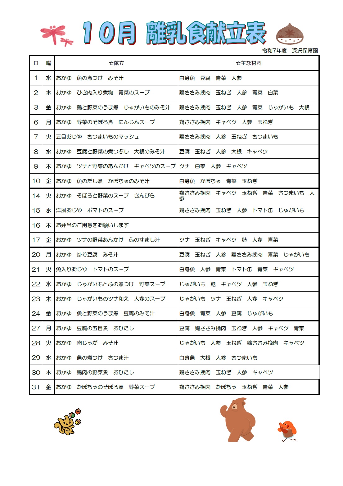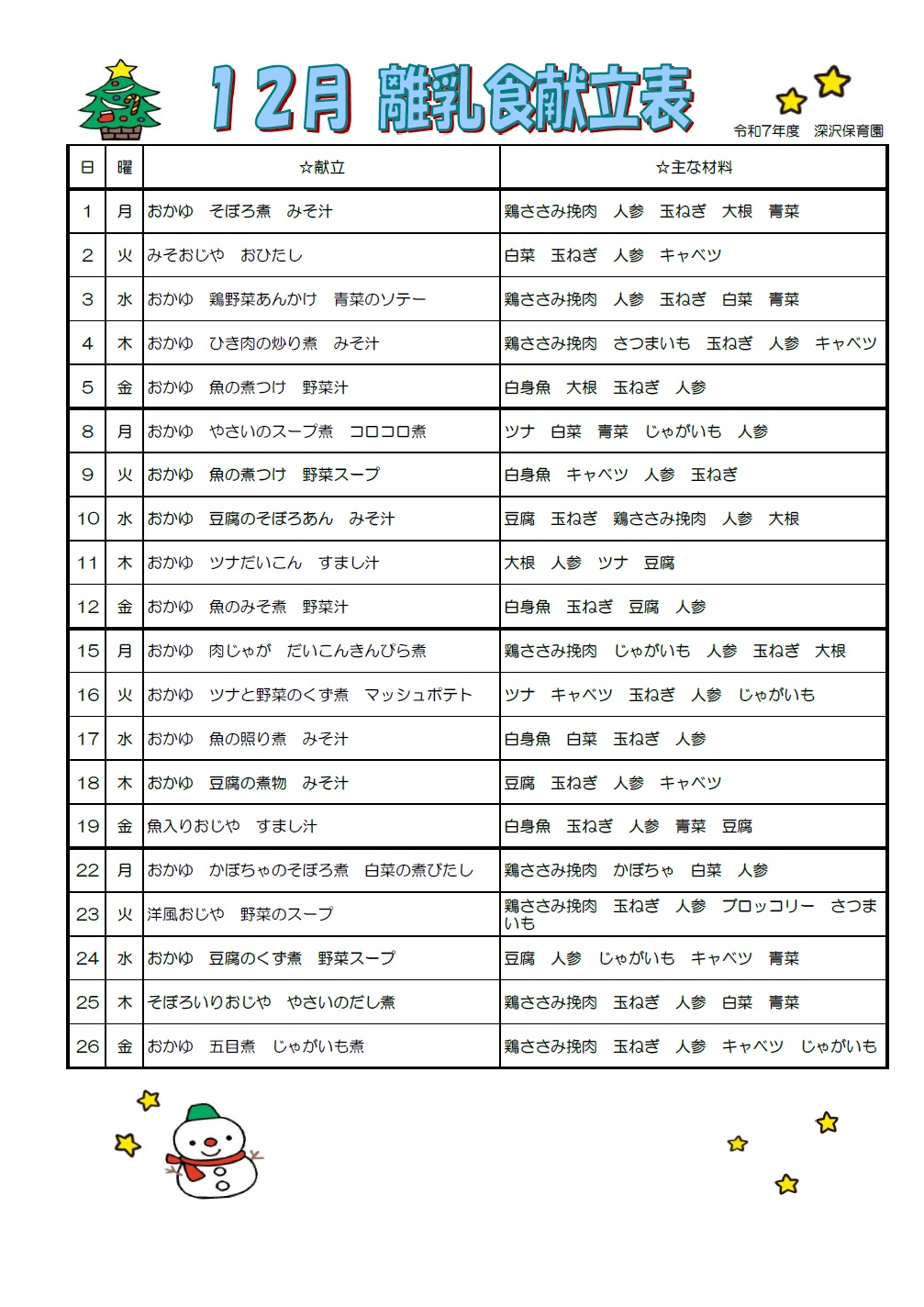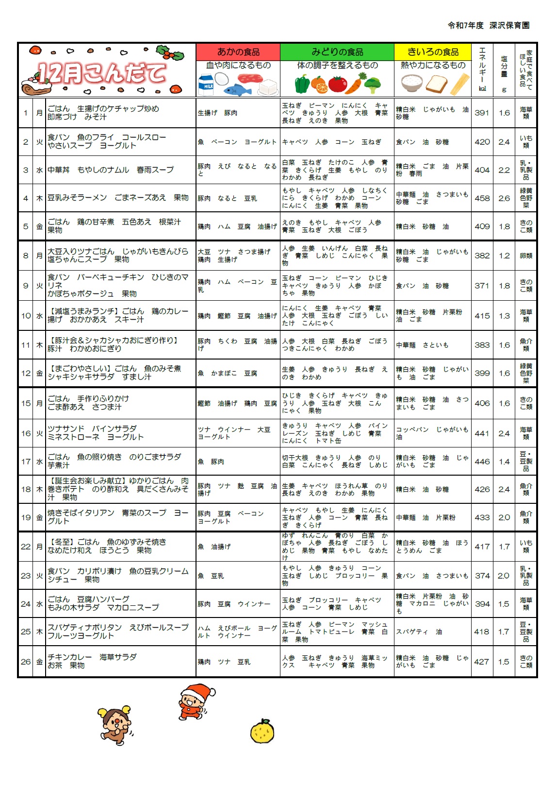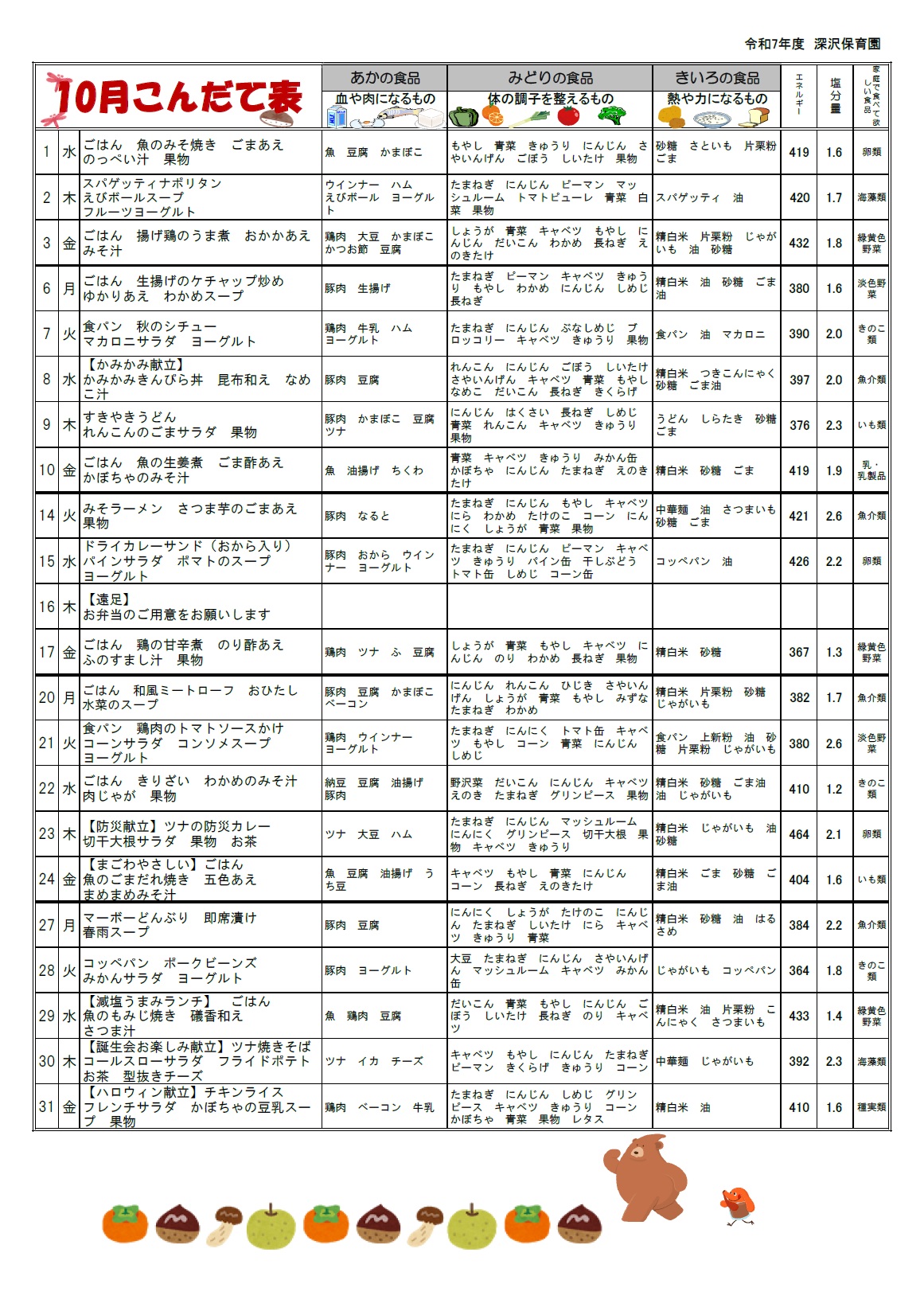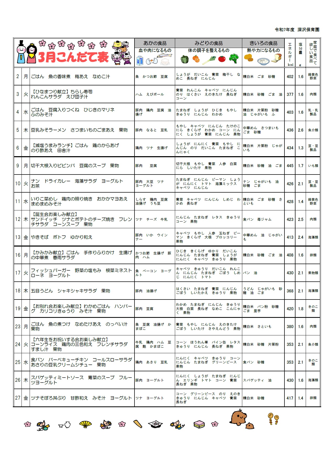 今月の献立