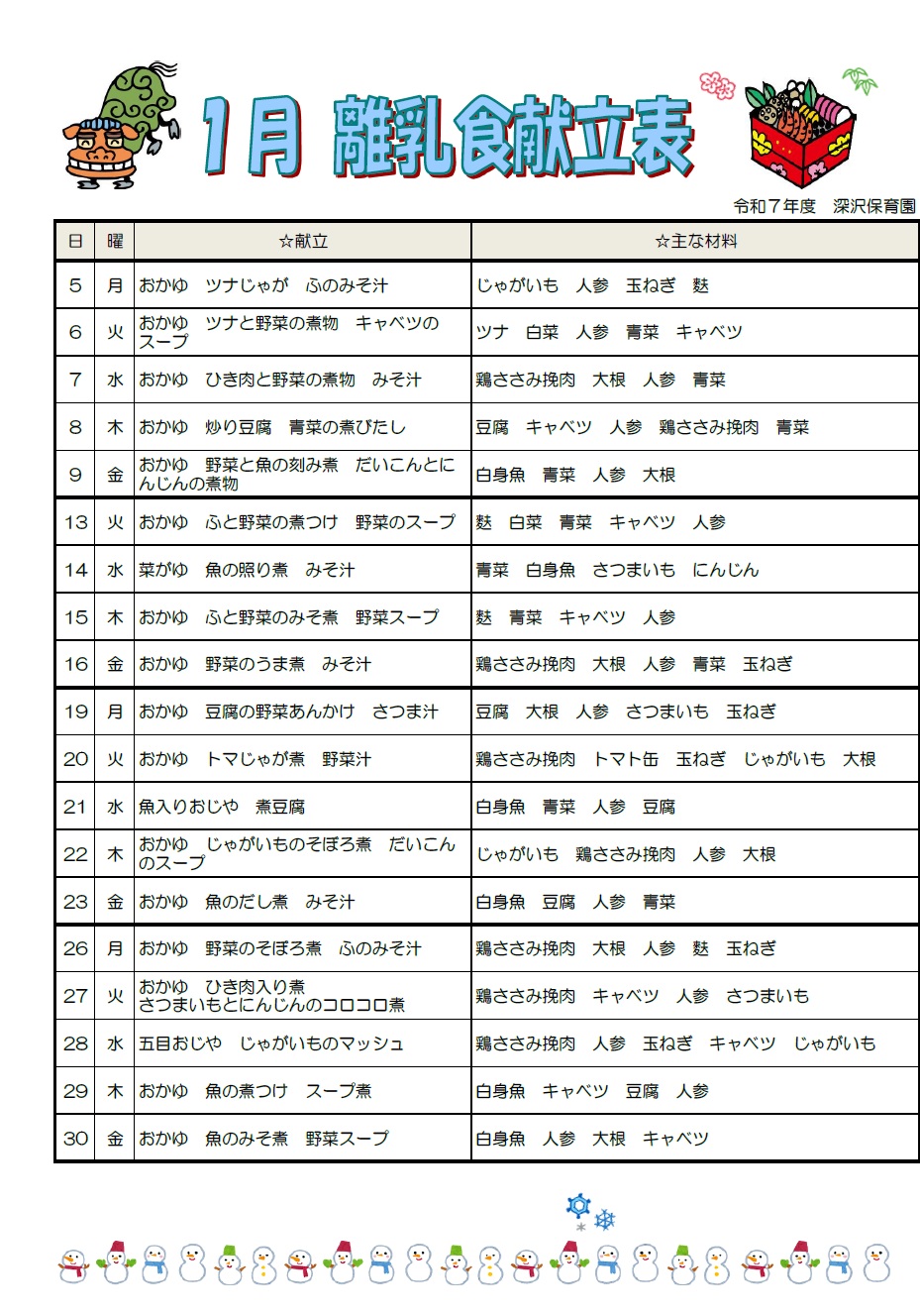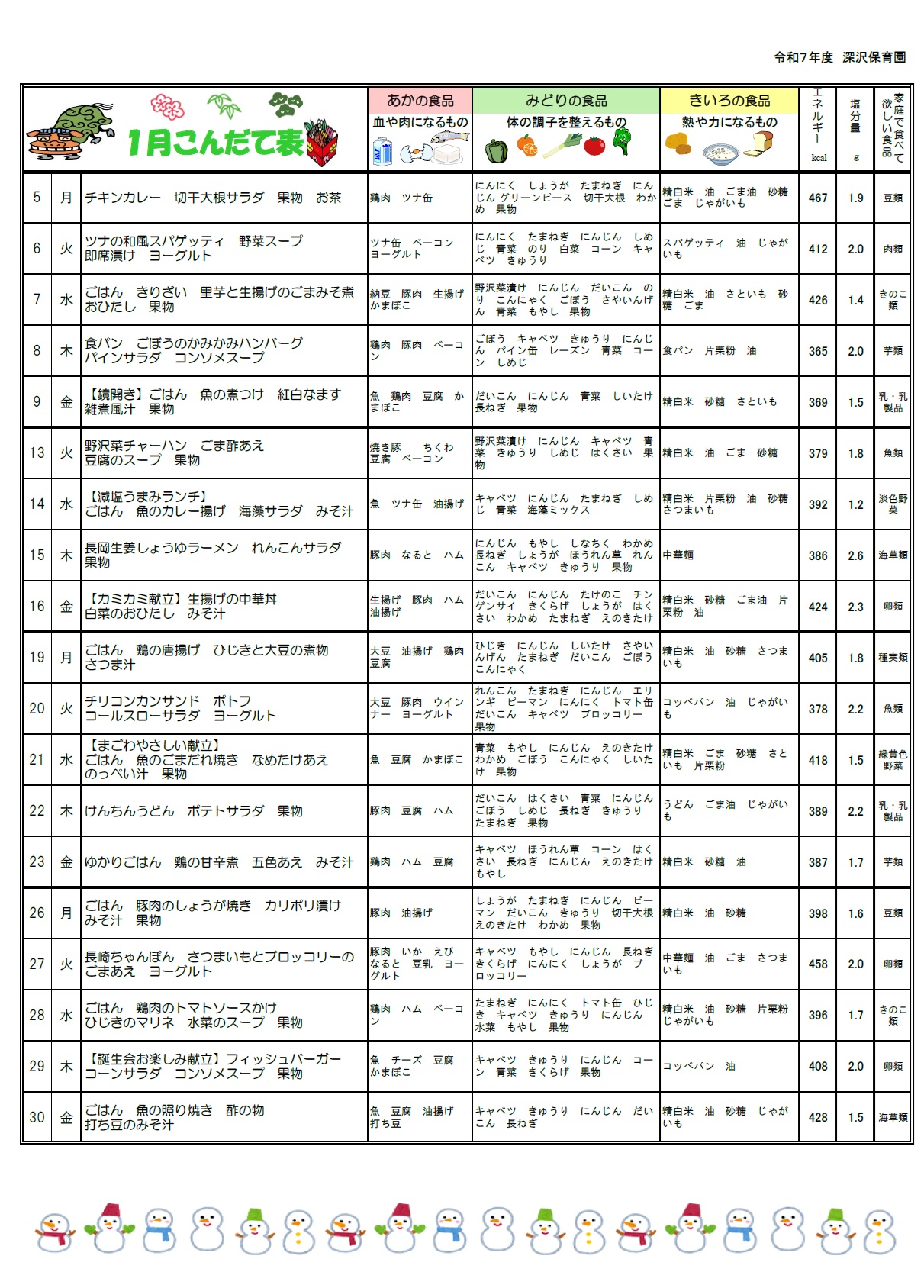 今月の献立